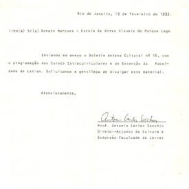 Coleção João Carlos Goldberg (1991-1993) Item [Carta convidando a EAV a participar de mesa redonda durante a “Semana de foto egrafias” na EBA/UFRJ] JCG-0210 Baixar Metadados Título[Carta convidando a EAV a participar de mesa redonda durante a "Semana de foto egrafias" na EBA/UFRJ]Número de RegistroBREAVJCG0461FundoJoão Carlos GoldbergDatamaio 9, 1992GêneroTextualCatalogado - InventariadoInventariadoProdutorProfessora Isis Fernandes Braga, Diretora adjunta de intercâmbio cultural- EBA/UFRJQuantidade e Dimensões01 Item Continuar navegando [Carta solicitando envio de programação, material para divulgação de exposições, cursos e informações sobre visitas guiadas] [Carta sobre envio de publicação – “Boletim Antena Cultural nº16” – Faculdade de Letras UFRJ] Voltar para a lista de itens