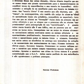 Coleção Rubens Gerchman (1975-1979) Item Relatório de atividades do ano de 1978 RG-0963 Baixar Metadados TítuloRelatório de atividades do ano de 1978Número de RegistroBREAVRG0817Série / SubsérieGestão > Planejamento EstratégicoFundoRubens GerchmanDatajaneiro 1, 1978Data e LocalRio de Janeiro; BrasilSuportePapelEspécie DocumentalRelatórioIndexaçãoRelatório de atividades do ano de 1978 > 1978 > RelatórioGêneroTextualIdiomaPortuguêsCatalogado - InventariadoCatalogadoArquivos RelacionadosRelatórios (BREAVRG0815; BREAVRG0816)Outras Inscrições"1978 / relatório", a grafite, no C.S.D.Descrição FísicaFolha de papel ofício, datilografada, papel amarelecido, manchas de fungos em todas as folhas do documento, perfuração de grampo de metal no C.S.E., vinco no e.b.e.Quantidade e Dimensões16 folhas; 16 páginas; 29,7 x 21,0 cm Continuar navegando Relatório de atividades do ano de 1977 Oficina de Cenografia (1975/1978) Voltar para a lista de itens